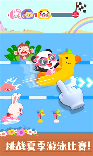 5、和小伙伴一起参加游泳比赛,感受夏日的清凉与欢乐。